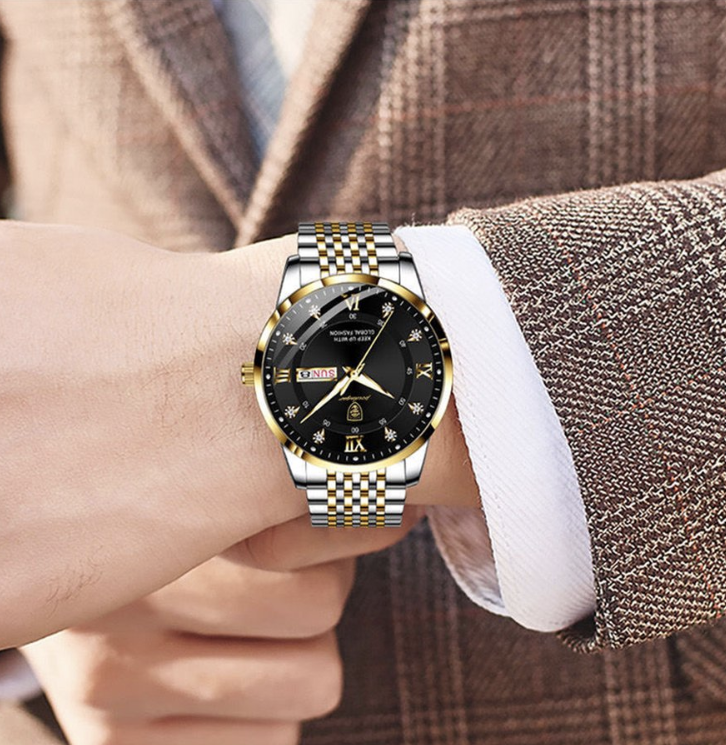 Ons waterdichte herenhorloge is de perfecte accessoire voor heren die op zoek zijn naar stijl, comfort en functionaliteit. Met het waterdichte ontwerp en de hoogwaardige materialen kunt u erop vertrouwen dat ons horloge bestand is tegen dagelijks gebruik. Met het strakke ontwerp en de elegante afwerking past ons horloge bij elke outfit en elke gelegenheid, of het nu gaat om werk, vrije tijd of avondje uit.